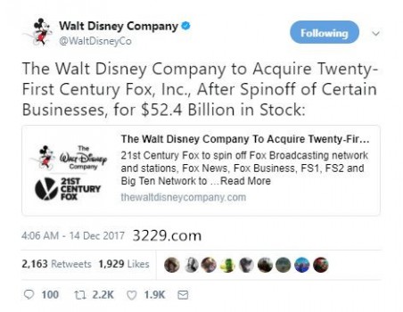 【原標(biāo)題】迪士尼成為美國(guó)媒體行業(yè)大重組的核心將改變電影的布局―來源:中國(guó)青年網(wǎng)―編輯:王靜迪士尼成為美國(guó)媒體行業(yè)大重組的核心將改變電影的布局據(jù)《日本經(jīng)濟(jì)新聞》12月18日?qǐng)?bào)道,美國(guó)媒體巨頭沃爾特·迪士尼(111.27,\u00A00.70,\u00A00.63%)將收購(gòu)?fù)袠I(yè)的二十一世紀(jì)福克斯。通過互聯(lián)網(wǎng)發(fā)行視頻的Netflix(190.12,\u00A00.56,\u00A00.30%)等新興企...