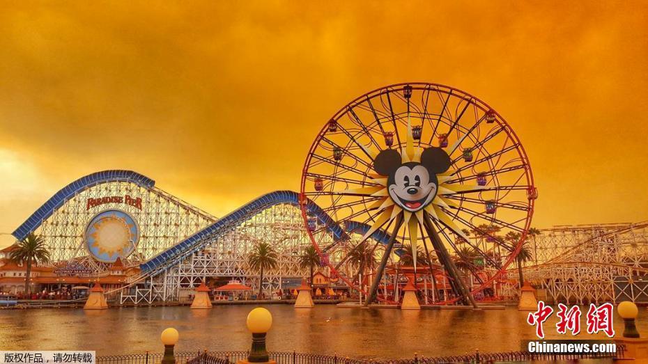 山火的威力 美國加州迪士尼樂園背景變橙色