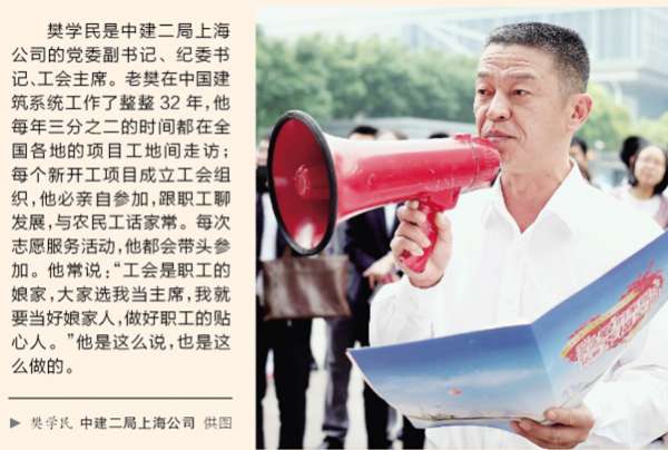 腰桿筆直、身形干練,留著清爽的寸頭,樊學民留給人一絲不茍的形象,但提起這位工會主席,中建二局華東公司的職工們都親切稱呼他“樊主席”、“樊書記”,說他沒有架子,總是將心比心,把員工的事當自己的事。從業三十幾載,樊學民至今每年大約有三分之二的時間奔走在各工地,并始終恪守著自己的準則:認真工作只能把事情做合格,用心工作才能把工作做優秀。在他和同事的努力下,公司先后榮獲了“全國文明單位”、“全國五一勞動獎...