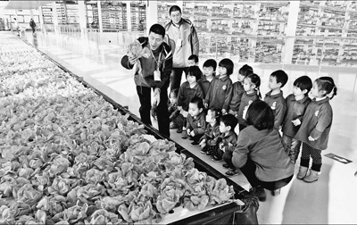 由中糧集團(tuán)攜手中國農(nóng)業(yè)科學(xué)院打造的中糧智慧農(nóng)場是中國首個(gè)世界級都市農(nóng)場,前不久在北京開園。該農(nóng)場以“現(xiàn)代農(nóng)業(yè)的科技示范”和“都市農(nóng)業(yè)的生態(tài)樣板”為總體定位,為我國現(xiàn)代農(nóng)業(yè)的可持續(xù)發(fā)展提供解決方案。圖為在中糧智慧農(nóng)場里,小朋友在參觀世界領(lǐng)先的H架立體栽培系統(tǒng)以及漂浮栽培系統(tǒng)。黃子龍攝(人民視覺)《人民日報(bào)》(2015年12月23日10版)...