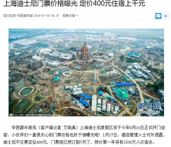 網傳上海迪士尼度假區門票400元 官方終于回應了