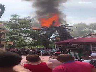 迪士尼“魔龍”著火 游客淡定圍觀:不是特技嗎?