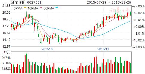 新寶股份(個股資料操作策略咨詢高手實盤買賣)新寶股份(002705)周一午間發(fā)布公告稱,公司控股股東廣東東菱凱琴集團有限公司于2015年12月18日增持18.99萬股,占公司股份總額的0.04296%,成交均價為21.8438元/股。至此其于2015年7月9日做出的關于增持公司股份的計劃已經完成。此前新寶股份披露的公告顯示,東菱集團計劃自2015年7月9日起至2015年12月31日止,根據中國證監(jiān)...
