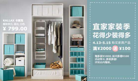 家裝正當季,不負好春光。正在趕裝修跑斷腿的你,宜家暖心推出了“宜家家裝季”優惠活動,4月13日至5月15日,全場家具產品(含櫥柜)滿¥2000送¥100活動贈卡,多買多送,花得少裝得多!趕緊去宜家一站式購齊新居所需,實惠又省心!據悉,本次活動專門山城春夏裝修旺季量身打造,全場所有家具類產品,包括櫥柜、衣柜、沙發、床及床墊、電視柜、餐桌椅、辦公家具、兒童家具、戶外家具,一應俱全都參加這次優惠活動,滿...