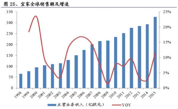 宜家是全球最大的家具家居用品商家,于1943年創建于瑞典,發展歷程可分為三個階段:(1943-1972)商業模式形成:受益于瑞典經濟在戰后飛速發展和城市化進程加快,裝修及家具產業市場需求迅速擴大。宜家自1950年引進家具產品和轉向家居經銷以來,逐步制定開創性的家居店經營和銷售策略,如重視產品設計、銷售大眾需求家居、保持低成本和低售價、體驗式展示等,企業規模迅速壯大,年銷售額達到4000萬歐元。(1...