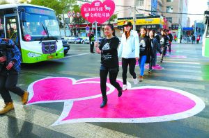 蘭州首條“愛心斑馬線”亮相中山橋頭(組圖)