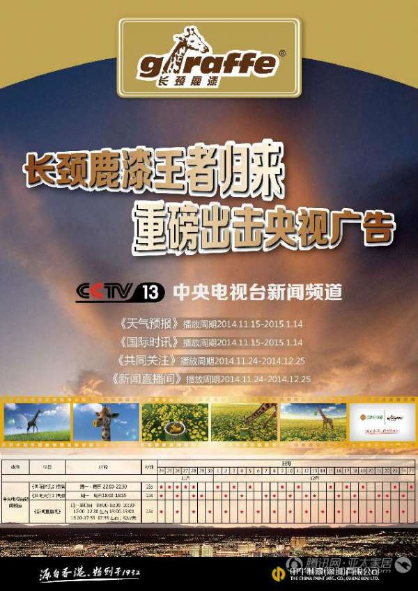 長頸鹿漆王者歸來 重磅出擊央視廣告
