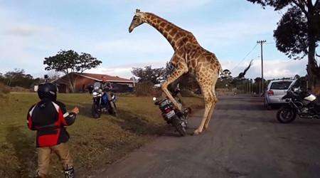 長頸鹿對摩托車一見鐘情 企圖與其發(fā)生性關系