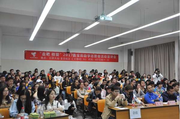 4月7日,“走吧微愛”嘉寶莉助學志愿者活動第五次走進云南師范大學,五年助學招募,嘉寶莉“走吧微愛”活動早已與云南師范大學莘莘學子結下了不解之緣。從前期招募宣傳吸引了300多名學子前來報名,到當天晚上熟悉的匯文樓宣講會現場座無虛席,“走吧微愛”已不單純是一個熟悉的名字,而這個活動,早已成為了眾多懷抱公益之心的學子,走向大山,給貧困孩子送去希望之光,送去微微大愛的光明大道。“走吧微愛”嘉寶莉助學志愿者...