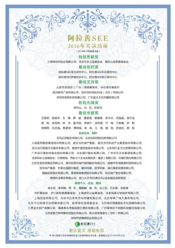 阿拉善SEE為三棵樹頒發(fā)公益籌款“特別貢獻獎”