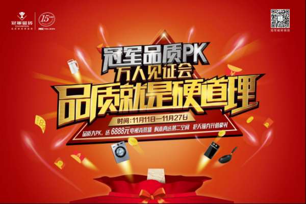 ?冠軍磁磚作為兩岸三地華人世界瓷磚行業(yè)歷史最悠久的品牌,在“雙十一”這個購物狂歡節(jié)來臨之際,強勢推出“品質(zhì)就是硬道理——冠軍品質(zhì)PK萬人見證會”大型促銷活動,11月11日-11月27日,包括北京、天津、上海、江蘇、浙江等全國各區(qū)域冠軍終端店面都將掀起前所未有的鉅惠風暴,優(yōu)惠力度之大、明星產(chǎn)品之多,六星級服務之貼心……必將俘獲廣大消費者的心。??品質(zhì)PK,我為冠軍代言??為了還原消費真相,深度探究產(chǎn)...