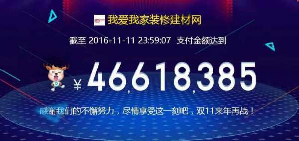 】11月12日凌晨,2016天貓雙11落下帷幕。1207億元的成交額遠超去年的912.17億元。銷售額的急劇攀升上演了驚險的速度與激情。其中家裝e站在3分鐘內(nèi)就突破了億元大關(guān),林氏木業(yè)29分40秒成交1.5億,pingo國際在56分鐘突破兩億,而顧家家居在1小時30分就突破了去年全天的銷售額。在家具、家紡、家裝、主材、全屋定制等細分品類中,各家的成績到底如何?家裝主材類:大自然奪得家裝主材銷售第一...