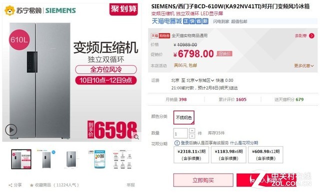 節(jié)能又靜音 西門子冰箱天貓鉅惠進行時