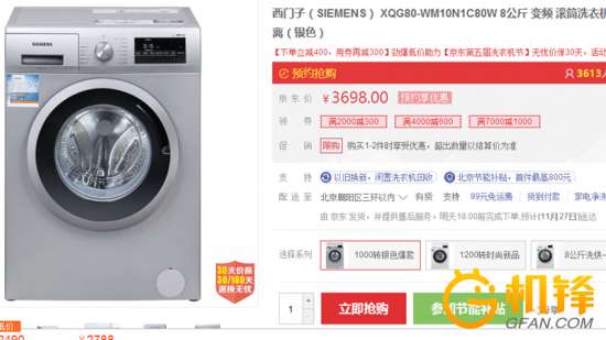 (原標(biāo)題:無菌洗衣新理念西門子滾筒洗衣機(jī)熱賣)西門子XQG80-WM10N1C80W變頻滾筒洗衣機(jī)其獨(dú)有的殺菌程序可在洗衣的同時(shí)有效祛除衣物上的細(xì)菌,從而將衣服真正洗干凈。這款西門子變頻滾筒洗衣機(jī)改變了人們對(duì)于傳統(tǒng)洗衣觀念的認(rèn)識(shí),加入了除菌這一非常實(shí)用的功能,不僅僅只洗掉污漬,更深入殺菌,全方位呵護(hù)您和家人的身體健康。該機(jī)搭載的高效電機(jī),性能強(qiáng)勁,動(dòng)力澎湃,噪音小,震動(dòng)弱,節(jié)能減耗。不但功能強(qiáng)大,...