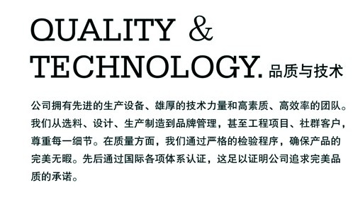 堅(jiān)持“是工廠更是學(xué)堂,是舞臺更是擂臺”的人才觀,在企業(yè)發(fā)展的廣闊平臺上大膽演繹精彩:遵循“律已秉公,敬業(yè)愛崗”的行為準(zhǔn)則;堅(jiān)持“先于顧客想到,超乎期待做到”的服務(wù)精神;在質(zhì)量是上秉承“用心于細(xì)節(jié),專注于毫厘”的作風(fēng)。惟此,我們通過不斷的創(chuàng)新,不斷的努力,不斷的富產(chǎn)品線,不斷的充實(shí)品牌內(nèi)涵,就一定能夠打造完美品質(zhì),登臨至高境界。