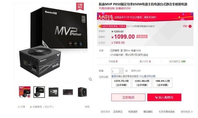 \u00A0\u00A0\u00A0\u00A0航嘉MVP系列電源是針對電競玩家專門打造的性能電源,最新的航嘉MVP\u00A0P850電源性能強悍,外觀優(yōu)秀,全模組的設計也滿足高端玩家的需求。目前這款電源在天貓商城售價1099元,喜歡的玩家可以購買嘗試。點擊購買(圖片來自天貓商城)\u00A0\u00A0\u00A0\u00A0航嘉MVP\u00A0P850電源的額定功率為850W,可以滿足游戲...