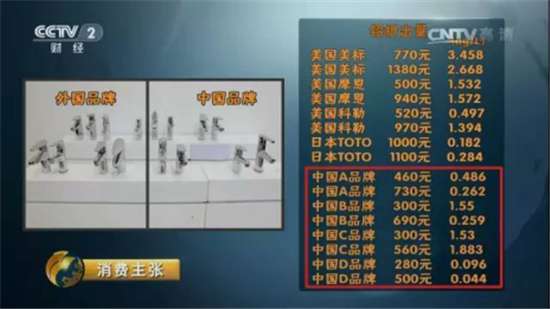 央視二套在近期播出的「消費主張」,再次刷新了消費者對中外品牌水龍頭質(zhì)量認知的「想當(dāng)然」。在這期《你家的水龍頭還好嗎?》的專題節(jié)目中的對比測評表明:在原材料標(biāo)準(zhǔn)、鉛析出量、有機物析出量等測評中,中國品牌產(chǎn)品對比洋水龍頭,在價格更經(jīng)濟的前提下,均為占優(yōu)。在水龍頭市場,精品國貨的勝出并非偶然。近幾年,在質(zhì)檢總局、行業(yè)協(xié)會引領(lǐng)下,恒潔等衛(wèi)浴領(lǐng)軍品牌正在實現(xiàn)從智能坐便器到健康水龍頭,整體品質(zhì)上的全面趕超。早...