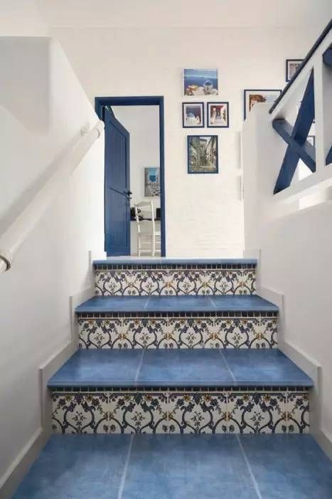 在復(fù)式、別墅、閣樓等家居空間中,樓梯成為了連接上下樓層的紐帶。設(shè)計精妙的樓梯,恰似一段間奏,或一個圓滑的轉(zhuǎn)折號,讓空間的起承轉(zhuǎn)合過渡得自然優(yōu)雅。不同的樓梯帶來不同的美感,或旋轉(zhuǎn)或筆直,方寸之間引人入勝。生活中如果經(jīng)常看到這么藝術(shù)的樓梯,想必爬樓梯這么辛苦的運動也會變得有趣起來。那下面就一起來看看,那些用瓷磚鋪就的美麗樓梯吧~藍與白是地中海風(fēng)格最經(jīng)典的搭配:純白色的墻壁,天藍色的樓梯,踏步之間配以手...