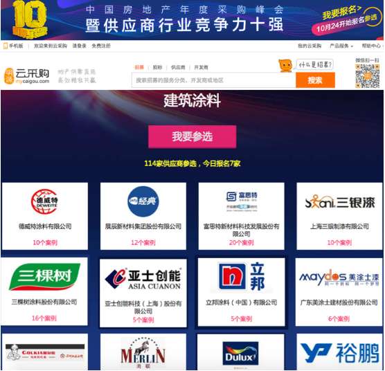 由明源云采購主辦的“中國房地產(chǎn)年度采購峰會暨供應(yīng)商行業(yè)競爭力十強(qiáng)評選”,活動進(jìn)行當(dāng)天,就吸引了960多家供應(yīng)商報名參選,引起了地產(chǎn)行業(yè)供應(yīng)商群體的轟動,其中建筑涂料類供應(yīng)商就有100多家報名,涂料大咖立邦涂料、多樂士漆、三顆樹、嘉寶莉漆都來參選了。一年一度的涂料品牌活動都是涂料界的年度大事,此次地產(chǎn)行業(yè)供應(yīng)商評選更不例外,活動接受1600家開發(fā)商的合作檢驗、100名地產(chǎn)采購高層的專家評審,獲得行業(yè)...