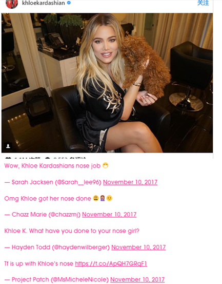 網(wǎng)易體育11月11日?qǐng)?bào)道:近幾個(gè)賽季,NBA家眷圈中風(fēng)頭最盛的當(dāng)屬科勒-卡戴珊,從奧多姆到哈登再到湯普森,科勒可謂長(zhǎng)期霸屏。日前,科勒在網(wǎng)絡(luò)上曬出自己和小狗的照片,沒(méi)想到又引發(fā)爭(zhēng)議。科勒在社交網(wǎng)絡(luò)上曬了一張自己和一只可愛(ài)的小貴賓犬的照片,并表示:“這個(gè)寶寶多可愛(ài)啊!狗狗之愛(ài)”結(jié)果,不知道是照片修圖效果太厲害,還是怎么回事,網(wǎng)友們紛紛盯上了科勒的鼻子。“你的鼻子他X的是怎么回事?”一位網(wǎng)友表示。“為...