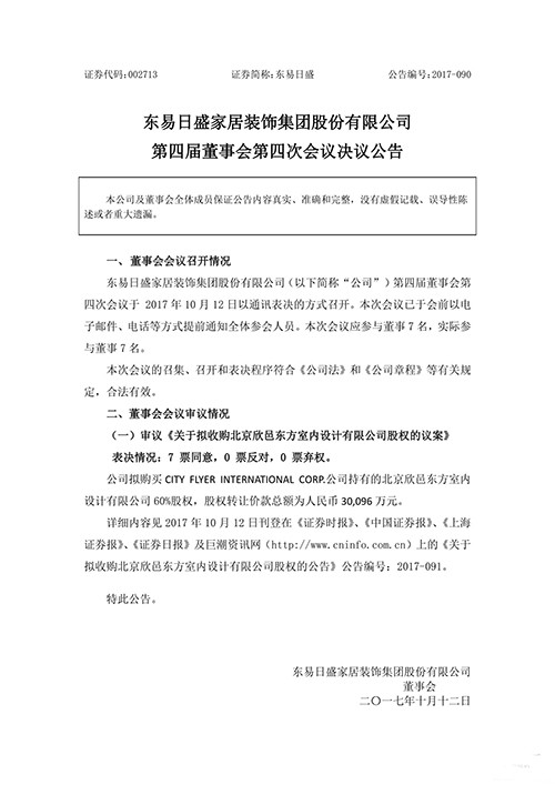 公告淘金:東易日盛擬3億元收購欣邑東方60%股權