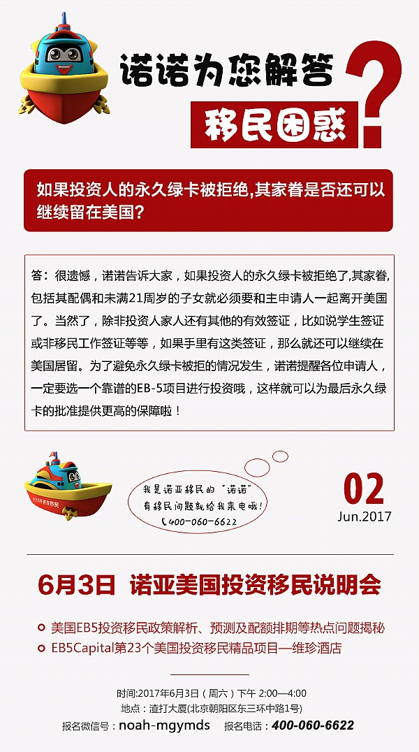 美國投資移民問答:如果投資人的永久綠卡被拒,家眷還可以繼續(xù)留在...