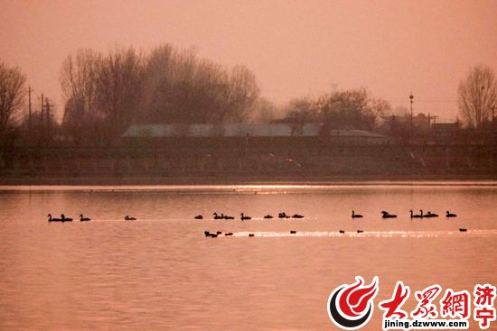 22只小天鵝“造訪”梁山泊 平原水庫成獨特風景