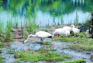 小天鵝(紅圈處)“落落大方”地與家鵝共同覓食。廣州日報韶關(guān)訊(全媒體記者卜瑜通訊員鐘平生攝影報道)南雄市一名養(yǎng)殖戶在山塘養(yǎng)了一群大白鵝,不料近日他卻發(fā)現(xiàn)自己家的鵝群里多了一名“不速之客”。在那群“嘎嘎”亂叫的大白鵝中間,有一只體態(tài)優(yōu)雅的“同類”顯得“鶴立鵝群”,它遍體雪白、脖子特別修長,氣質(zhì)雍容。這只“大白鵝”為什么會顯得與眾不同?它的真實身份是什么?身懷“絕技”的它緣何會現(xiàn)身于這群“呆頭呆腦”的...