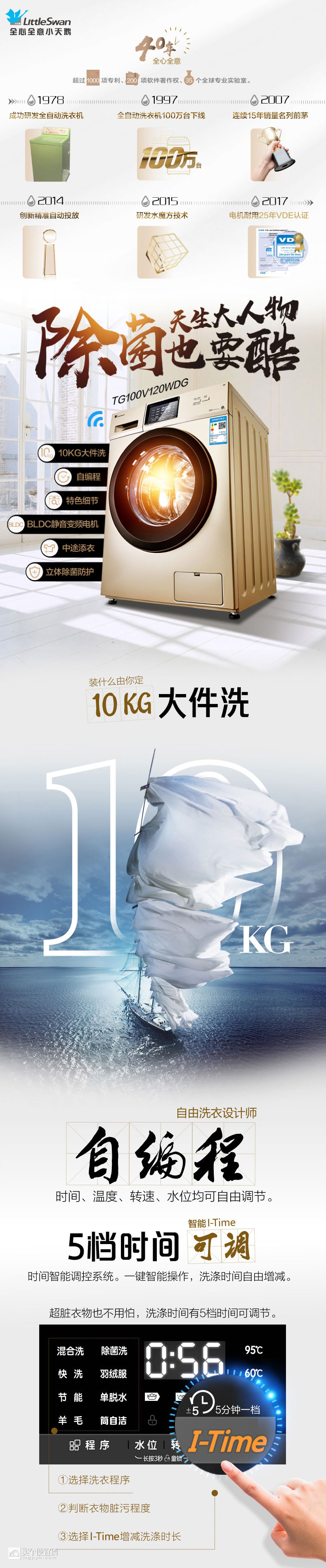 天貓小天鵝官方旗艦店活動價2499元,6月18日0-1點下單,前5000件立減400元,到手價2099元,有需要的買買可以看看。這款小天鵝TG100V120WDG滾筒洗衣機是2017年推出的旗艦級別型號。鎏金色外觀涂色,10公斤超大容量。搭載了1400轉(zhuǎn)的BLDC電機,節(jié)能高效,動力持久。配有雙重based穩(wěn)定系統(tǒng),4根環(huán)抱式阻尼避震+3塊動態(tài)平衡塊,最大程度上固定洗衣機。可根據(jù)衣物類型延長或縮短...