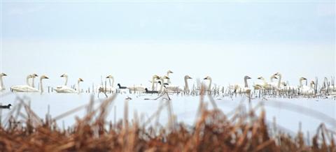 數(shù)十只小天鵝蘇州太湖“過年” 城管每天為它們站崗