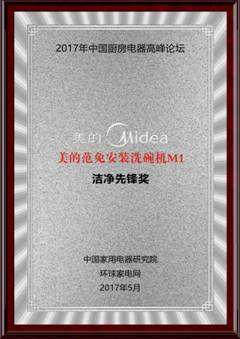 美的洗碗機獲中國廚電高峰論壇"潔凈先鋒獎"