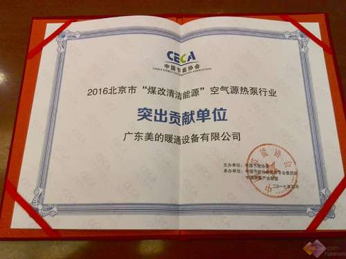 美的中央空調榮獲北京市“煤改清潔能源”突出貢獻單位