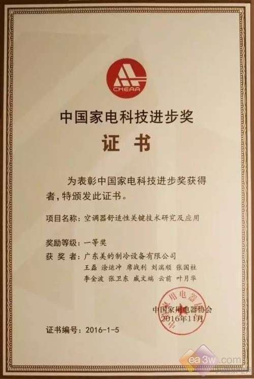 美的空調舒適星摘“中國家電科技進步獎”桂冠