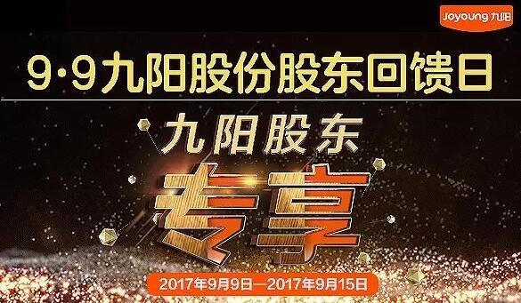 (原標(biāo)題:九陽股份特別的愛只給最親愛的股東)2017年9月9日,九陽股份(002242)為回饋所有股東特在全景網(wǎng)路演天下舉辦“9.9九陽股份股東回饋日”活動,凡是九陽股份的股東即可享受大幅低于市場價(jià)的“股東專享價(jià)”,產(chǎn)品包括豆?jié){機(jī)、破壁料理機(jī)、原汁機(jī)、面條機(jī)、電飯煲、熱水壺、炒菜機(jī)、洗碗機(jī)等數(shù)十件產(chǎn)品,基本涵蓋所有廚房小家電,其最高優(yōu)惠幅度直降近1800元!據(jù)了解,九陽股份產(chǎn)品目前已涵蓋豆?jié){機(jī)、面...