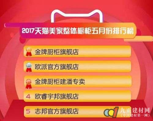 天貓美家5月銷量排行榜 金牌歐派穩(wěn)居冠亞軍
