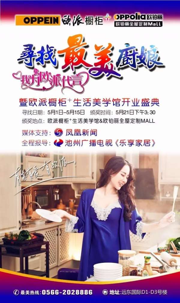 池州最美的廚娘在哪?世界好櫥柜,池州好廚娘。最美的櫥柜,尋找最美的你。喜歡廚房烹飪又愛美的女士們,為了弘揚(yáng)池州女性積極、陽光、健康、樂觀、豁達(dá)、和諧、美麗的精神面貌,池州歐派櫥柜+生活美學(xué)館&歐鉑麗全屋定制Mall盛大開業(yè)之際,特舉辦“尋找池州最美廚娘”活動(dòng)!本次活動(dòng)全程由鳳凰新聞、池州廣播電視臺(tái)《樂享家居》監(jiān)督、參賽時(shí)間:2017年04月28日——2017年5月12日期間,攜帶本人身份證到池州市...