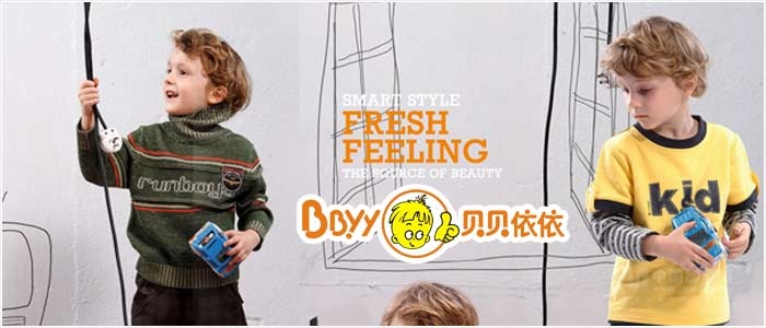 浙江貝貝依依服飾有限公司創(chuàng)辦于2002年,是一家集研發(fā)、生產(chǎn)、銷售于一體、專營“貝貝依依BBYY”品牌童裝的現(xiàn)代化服飾企業(yè)。經(jīng)過六年的迅猛發(fā)展,“貝貝依依BBYY”連鎖網(wǎng)點迅速在全國鋪開,秉承著“新一 代綠色童裝品牌”全新的發(fā)展理念,快速成長為中國童裝行業(yè)內(nèi)一個閃亮的知名品牌。