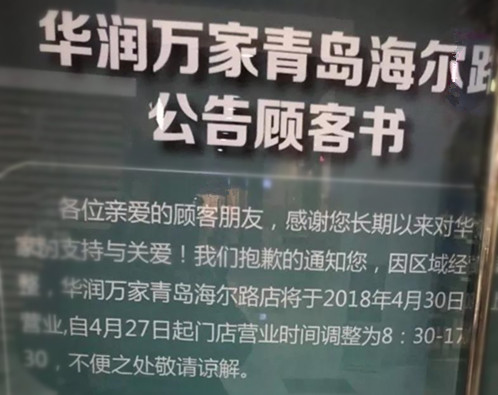青島半個月3家商超停業(yè) 百麗永旺后華潤萬家又關(guān)一店