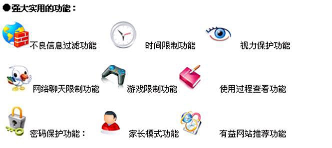 3、 定時,保護視力 :可以自主設(shè)置使用電腦的時間和上網(wǎng)的時間,就像學(xué)校上課,每一節(jié)課之間有課間休息時間一樣,有效地保護視力健康。
