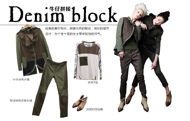 顏色主要是素雅的中性調(diào)和色,并隨著季節(jié)變化,春季:粉、黃、橘黃、藍(lán)來表現(xiàn)女性的柔美;夏季:白、粉;秋冬:咖啡、黑、牛仔藍(lán)、米色,來映襯女性柔中帶剛的一種堅(jiān)強(qiáng)之美。