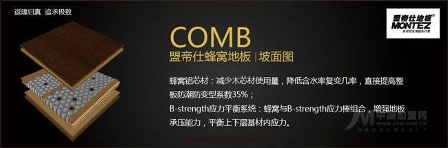 盟帝仕地板經(jīng)過(guò)多年研發(fā),在蜂窩木地板的研發(fā)上取得了重大突破,吸取蜂窩抗壓強(qiáng)度高、重量輕的特性,采用金屬鋁為蜂窩載體,在保留自然蜂窩結(jié)構(gòu)優(yōu)勢(shì)的同時(shí)吸取了金屬鋁的延展性與能量傳遞性。