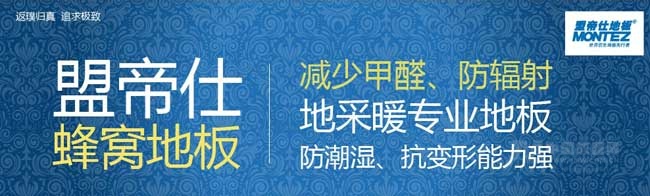 盟帝仕蜂窩地板,以鋁蜂窩作為地板芯材,并采用工藝進(jìn)行鑲嵌,基材的木材使用量減少45%,從而使基材粘合的化學(xué)粘合物減少一般以上,甲醛釋放量為0.4mg/L,低于國(guó)家標(biāo)準(zhǔn)要求(E1<1.5mg/L),更低于國(guó)際標(biāo)準(zhǔn)要求(E0<0.5mg/L)。