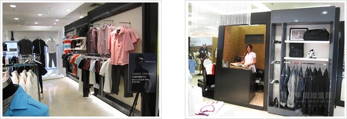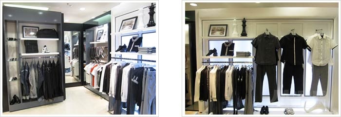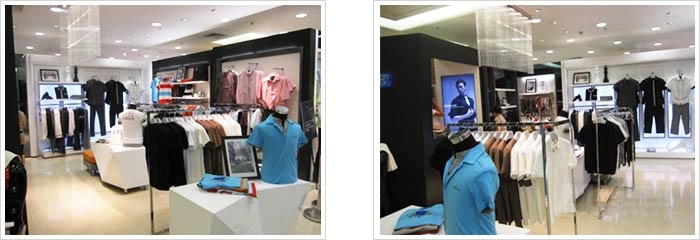 店鋪的整體設(shè)計(jì)以現(xiàn)代簡(jiǎn)約風(fēng)格為主,帶給消費(fèi)者一種經(jīng)典而又時(shí)尚的感覺,剛?cè)岵⑦M(jìn)的性格展現(xiàn)得恰到好處,與品牌的定位極其吻合。空間以白色為主色調(diào),質(zhì)感十足,輔以穩(wěn)重的黑色以及內(nèi)斂的灰色,再通過小部分應(yīng)用橙色,點(diǎn)綴空間色彩,使整個(gè)空間在冷峻中流露出激情。通過多層次多類別的貨品陳列和明亮的的燈光效果,營(yíng)造出時(shí)尚、品味、個(gè)性的空間感覺。