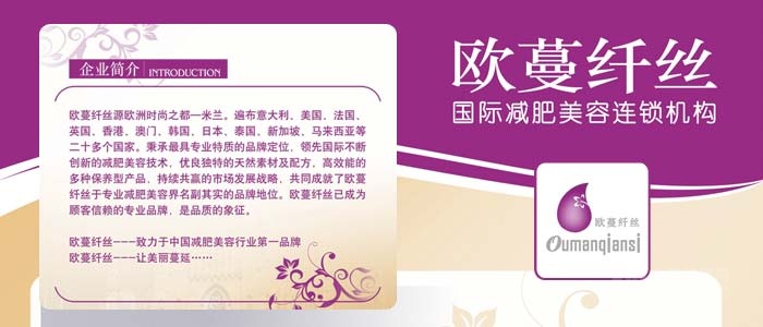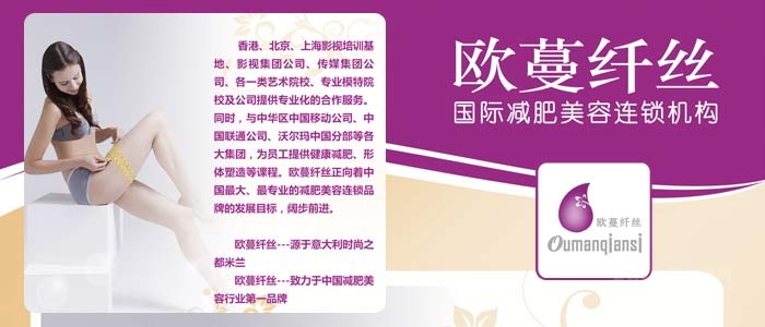 歐蔓纖絲自2003年進入中國,先后為香港、北京、上海影視培訓(xùn)基地、影視集團公司、傳媒集團公司、各一類藝術(shù)院校、專業(yè)模特院校及公司提供專業(yè)化的合作服務(wù)。同時,與中華區(qū)中國移動公司、中國聯(lián)通公司、沃爾瑪中國分部等各大集團,為員工提供健康減肥、形體塑造等課程。歐蔓纖絲正向著中國最大、最專業(yè)的減肥美容連鎖品牌的發(fā)展目標(biāo),闊步前進!