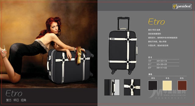 “President 凌秀”品牌起時(shí)于上世紀(jì)60年代的印尼,以小規(guī)模生產(chǎn)單一品種--(ABS)硬箱,發(fā)展至今為硬箱(ABS、PC)與軟箱(EVA)中旅行箱、公文箱、拉桿箱、化妝箱、皮具等多品種箱包生產(chǎn)基地,現(xiàn)已成為東南亞較大的旅行箱制造商和分銷商之一。