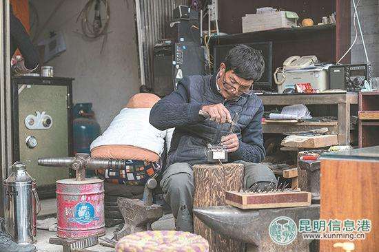 寸之昌正在制作銀器供圖昆明信息港?都市時報記者吳雙紅在云南大理州鶴慶縣,有一個新華村,這里住著一批老銀匠。即便放在全中國來說,他們的手藝也足以用“鬼斧神工”來形容。這群曾經(jīng)踏雪過山的老匠人,守護著千年傳承的技藝,憑借“一張打”的蓋世絕藝笑傲江湖;他們依靠互聯(lián)網(wǎng)和淘寶店,把自己的匠心和手藝傳向世界。時代在變,但這群匠人的心態(tài)和精神沒變。不慌不忙中的錘起錘落,應(yīng)了那句老話:“器物有魂魄,匠人自恭謙!...