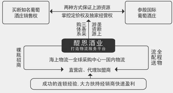 醍恩酒業(yè)破局進(jìn)口紅酒連鎖新模式(圖)價格虛高、貨源不穩(wěn)、以次充好帶來的進(jìn)口紅酒性價比不高、零售價過高的惡性競爭局面迎來了破局者醍恩酒業(yè)。打開加盟大門5個月,開了140多家加盟店,發(fā)展了300多位經(jīng)銷商的驕人業(yè)績讓業(yè)界震驚。當(dāng)然更讓人關(guān)注的是,醍恩酒業(yè)開創(chuàng)的“源頭壟斷+平價策略+連鎖分銷”的全產(chǎn)業(yè)鏈運(yùn)營進(jìn)口紅酒的連鎖新模式。專家相信,隨著這一模式被廣大加盟商、經(jīng)銷商所認(rèn)可,中國進(jìn)口紅酒的市場格局將重...