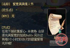 合成愛意滿滿的心DNF2016情人節(jié)Buff活動(dòng)獎(jiǎng)勵(lì),DNFDNF2016情人節(jié)活動(dòng)DNF愛意滿滿情人節(jié)地下城與勇士DNF愛意滿滿情人節(jié)活動(dòng)在這個(gè)春節(jié)活動(dòng)期間開啟了,話說這不是應(yīng)該情人節(jié)開啟的活動(dòng)么,不管了,下面我們來看看這個(gè)活動(dòng)的具體內(nèi)容吧。DNF愛意滿滿情人節(jié):這是一個(gè)收集活動(dòng),主要還是活的一些對(duì)刷圖有力的BUFF,著實(shí)沒什么亮點(diǎn)。1.刷圖得空曠的心2.合成得愛意滿滿的心3.送的情人節(jié)BUFF...