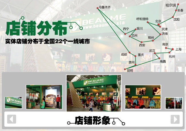 戶外休閑融合傳統(tǒng)經(jīng)典的韻味,形成BEAUME(寶美戶外休閑)品牌所特有的、舒適的穿著文化。由防風、防水、透氣面料專家美國戈爾公司所提供的技術(shù)支持,憑借其面料肌理的豐富變化、流暢大氣的剪裁手段、精工優(yōu)良的制作工藝,以突出BEAUME所倡導的“舒適、干爽”的穿著理念。讓您在任何惡劣的氣候中,永保時尚與舒適。