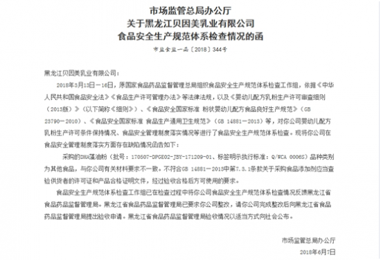 中國(guó)消費(fèi)者報(bào)訊(記者孟剛)國(guó)家市場(chǎng)監(jiān)管總局近日接連發(fā)布了對(duì)貝因美、伊利、圣元、多美滋、三元食品公司等6家乳品企業(yè)食品安全生產(chǎn)規(guī)范體系檢查情況的函。6家嬰幼兒奶粉企業(yè)在食品安全管理制度落實(shí)方面存在缺陷。不過(guò),此次通報(bào)顯示企業(yè)產(chǎn)品均無(wú)質(zhì)量問(wèn)題。通報(bào)指出,其中,黑龍江貝因美公司存在原料采購(gòu)品類(lèi)與該公司有關(guān)材料要求不一致的情況;天津伊利乳業(yè)一臺(tái)生化培養(yǎng)箱實(shí)際控制溫度比規(guī)定值低0.3℃;唐山三元存在廠區(qū)內(nèi)空...